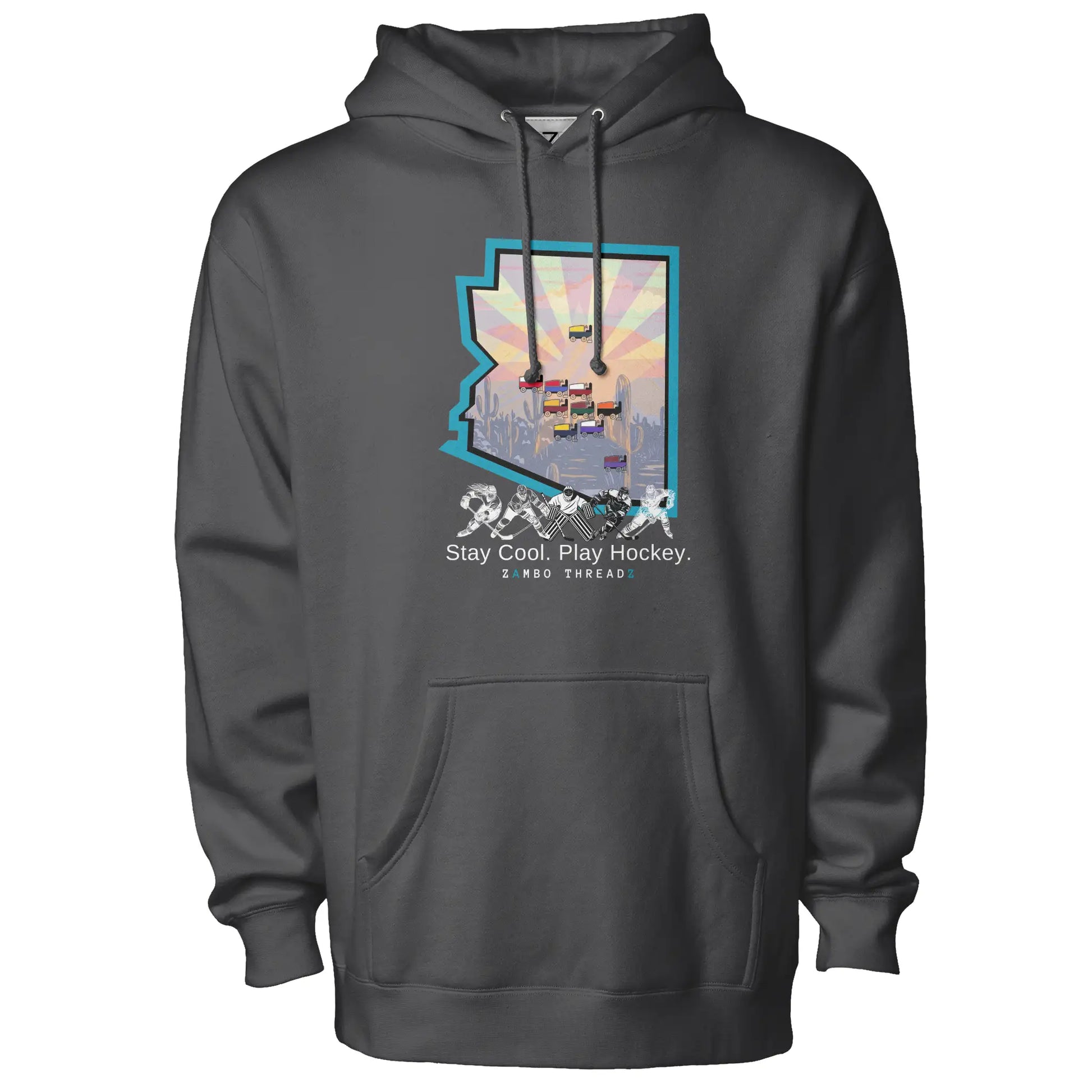 Stay warm and cozy in the rink while supporting Arizona hockey! Who knew a desert state would have nine rinks and even more hockey teams! This classic hoodie is comfy and has a convenient pouch pocket making it perfect to wear to catch a game or practice!